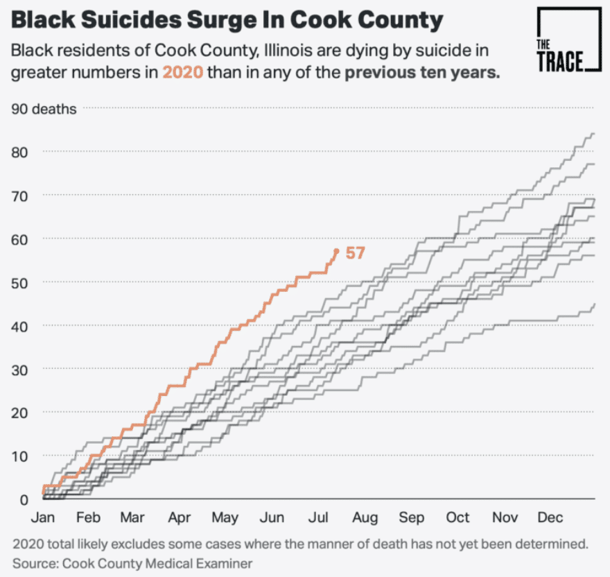 Clay’s death, along with the suicides of more than 100 other Black residents in Illinois last year, has led locals to call for new prevention efforts focused on Black communities. In 2020, during the pandemic’s first year, suicides among white residents decreased compared with previous years, while they increased among Black residents, according to state data.