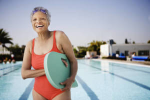 Taking your workout to the pool can help you perform the same moves that you do on land with much less stress on your joints and bones. So, if you’re recovering from an injury or have a pesky pain in the knee or elsewhere, the water can relieve some of that pressure. That’s not to say water workouts are easy. They can actually be more difficult than your land-based workouts since the water creates added resistance to every move you make.